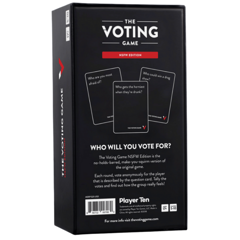 The Voting Game is a party game that uncovers the hilarious truth behind your friendships! Play begins when the first question card is revealed, e.g., Who regularly orders delivery from less than 5 blocks away?