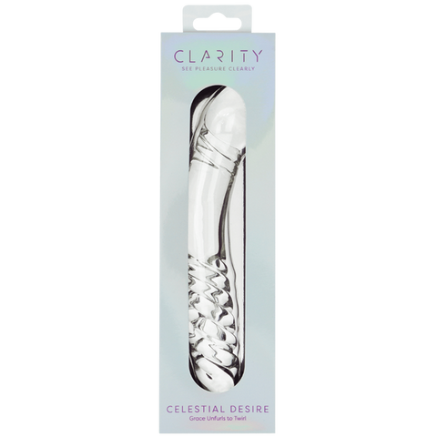 Handblown from premium borosilicate glass, the Celestial Desire offers an elongated 7.4-inch form crafted for those who crave intensity and sophistication. Its extended length allows for deeper penetration, sustained pressure, and versatile angles, delivering a sense of fullness and control. With a double-ended design, it adapts beautifully to solo exploration or partnered intimacy, offering distinct sensations from each end. Non-porous, body-safe, and compatible with all lubricants, it glides effortlessly and is easy to clean. Perfect for vaginal or anal play, and enhanced by temperature play - warm for comfort or cool for thrilling contrast—the Celestial Desire is a versatile statement piece for any premium collection.