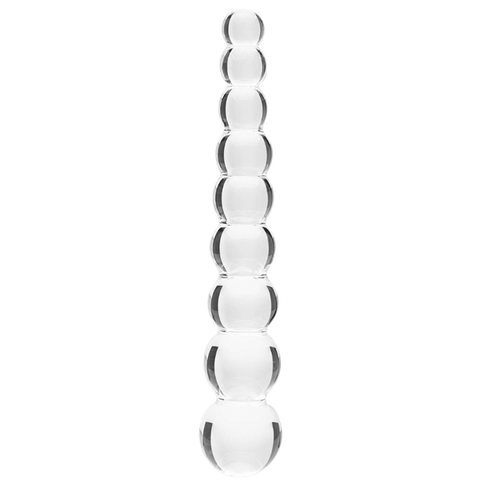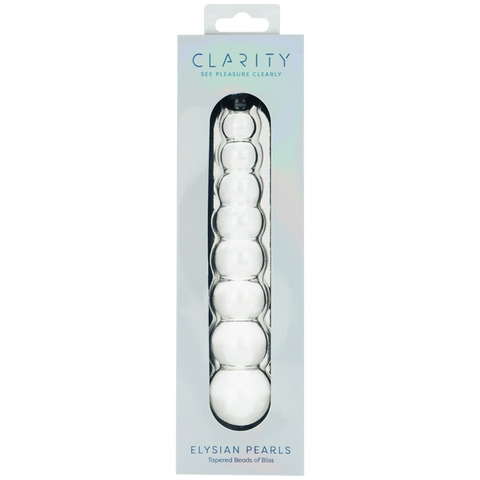 The Elysian Pearls is a 6.7-inch beaded glass dildo that delivers gradual, building pleasure through its elegantly graduated design.
